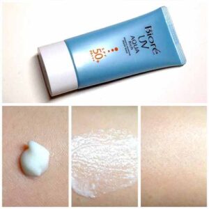 KEM CHỐNG NẮNG BIORÉ UV AQUA RICH có màu trắng sữa, khá lỏng nên khi thoa lên da sẽ thấm rất nhanh, cực kỳ dễ chịu, không hề bị rít và cũng không để lại vệt trắng trên da, cảm giác như bôi kem dưỡng da thôi, sau vài phút, da sẽ khô ráo và hầu như không có cảm giác đang bôi kem chống nắng, mùi kem hơi nồng nhưng bôi quen thì chả cảm giác gì nữa.