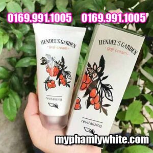 đã được nhà sản xuất Hendel’s Garden nghiên cứu và phát triển để làm trẻ hóa làn da, khiến làn da trở về nét thanh xuân như thưở ban đầu. Sản phẩm này không chứa những thành phần hóa học nào mà được chiết xuất từ quả kỷ tử, có tác dụng làm đẹp da, đem đến cho bạn làn da tự nhiên và căng mịn nhất. Công ty mỹ phẩm đã áp dụng công nghệ tiên tiến để làm ra sản phẩm kem Goji và giúp da mặt đàn hồi, giảm nếp nhăn chỉ sau 10 ngày sử dụng.