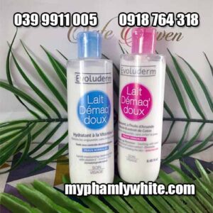 TẨY TRANG EVOLUDERM CHÍNH HÃNG không cồn dạng kem sữa và dạng nước phù hợp cho mọi loại da kể cả da nhạy cảm, chinh phục trái tim khách hàng đó là tính hiệu quả về lâu dài: đó là sau một thời gian dài sử dụng, làn da bạn vẫn khỏe mạnh sạch khỏe như trước, hoàn toàn không hề có dấu hiệu bị kích ứng hay bào mòn, mỏng đi. Sản phẩm được hãng cam kết dịu nhẹ không cồn, dùng được cho cả mắt môi nên mọi loại da đều có thể sử dụng được, dù là da nhạy cảm hay dễ bị kích ứng.